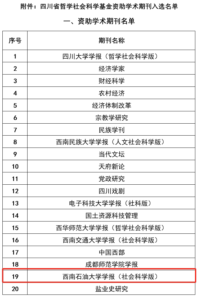 日前,四川省哲學(xué)社會科學(xué)工作辦公室公布了2023年四川省哲學(xué)社會科學(xué)基金資助學(xué)術(shù)期刊名單,《西南石油大學(xué)學(xué)報(社會科學(xué)版)》成功入選重點資助學(xué)術(shù)期刊名單,實現(xiàn)了學(xué)報社科版創(chuàng)辦核心期刊、建設(shè)一流期刊的新突破。