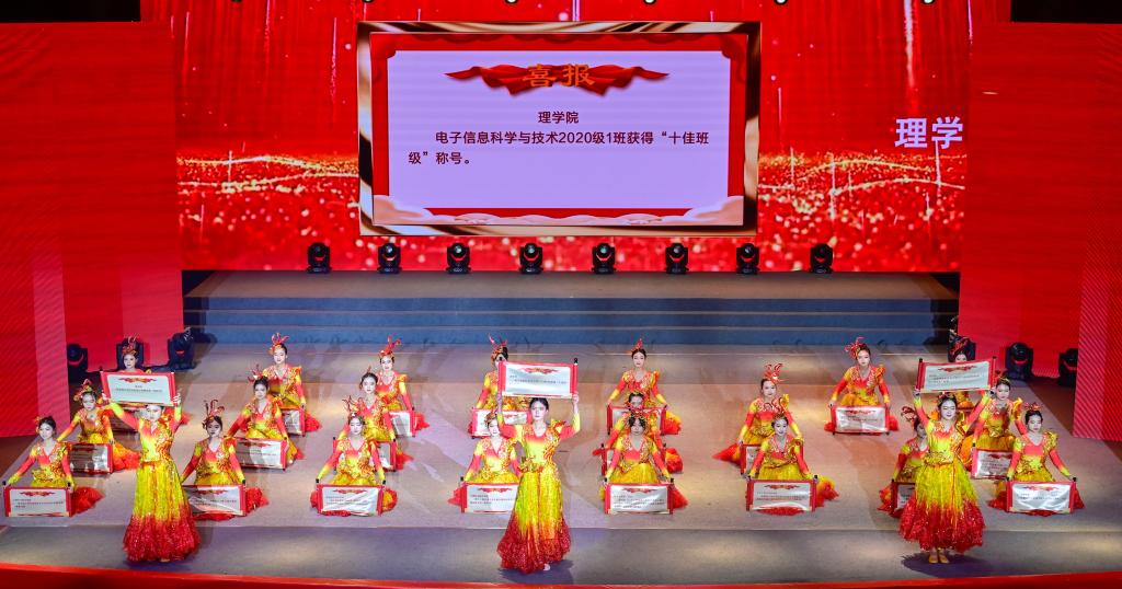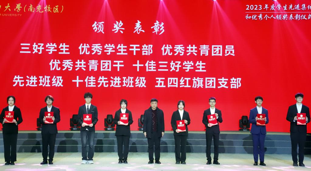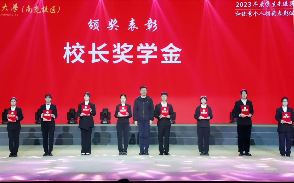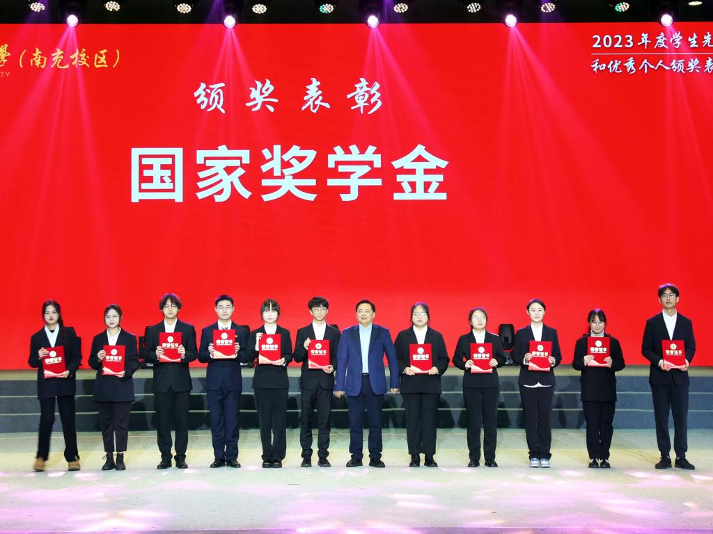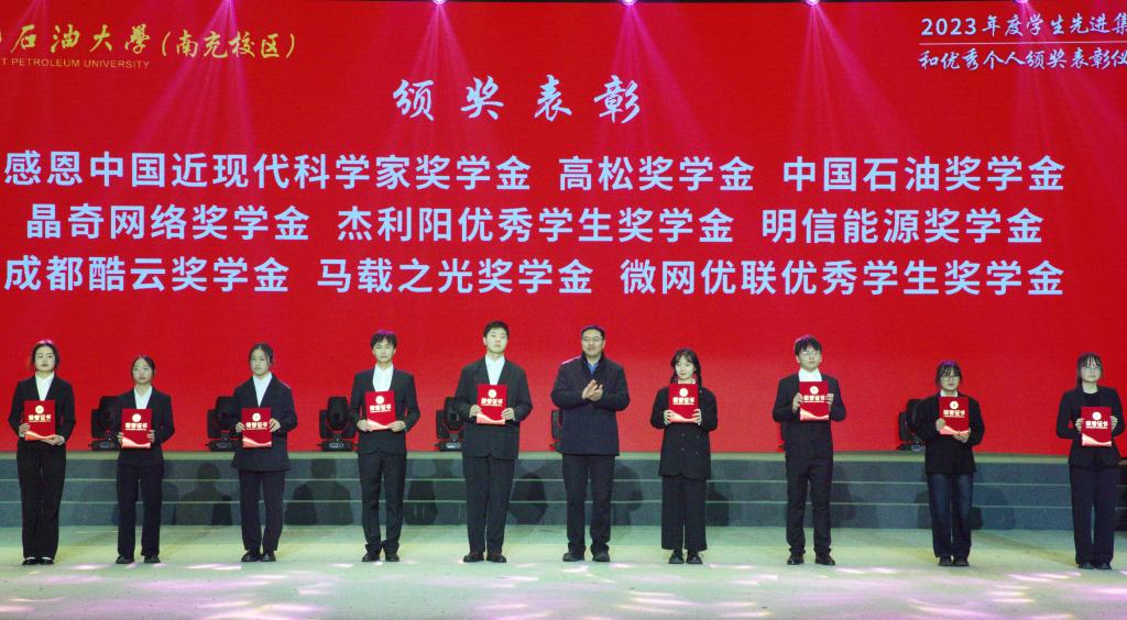 晚會現場還舉行了頒獎儀式。南充校區領導分別為2023年度各類獎學金獲得者代表和先進集體、優秀個人代表進行頒獎。
