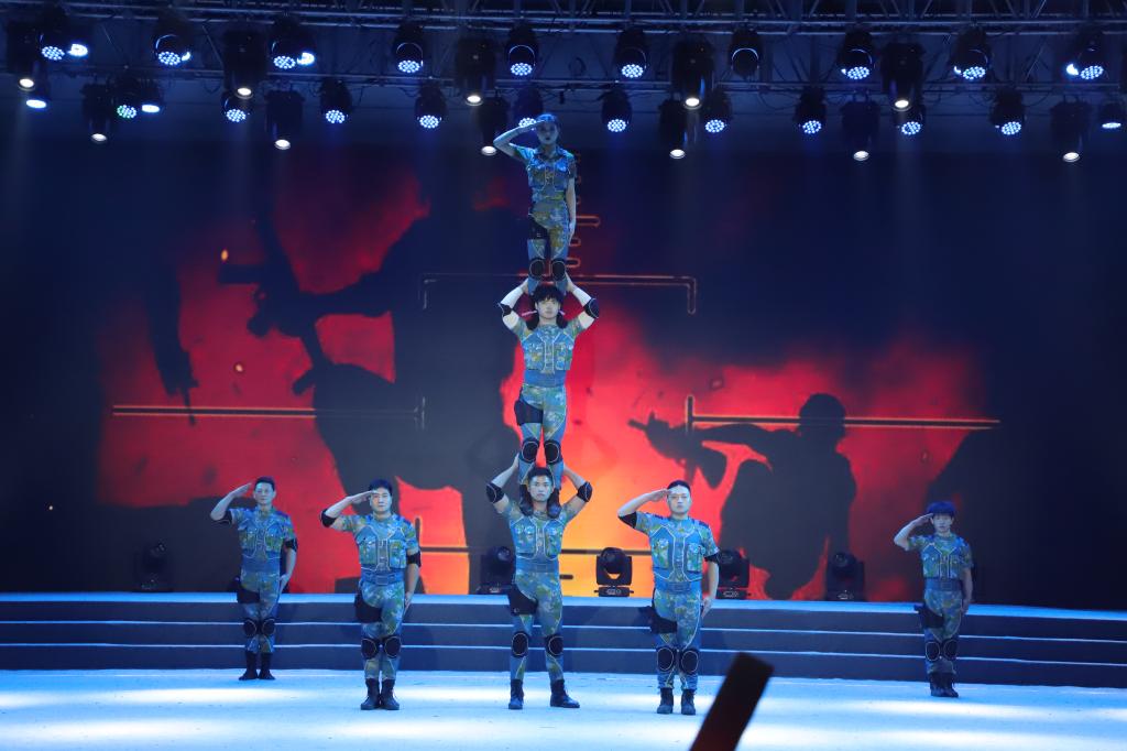 說學逗唱,演員憑借扎實的基本功,生動演繹了相聲《歡聲笑語》,在“歡樂吉祥、喜氣洋洋”的氛圍里,為師生送去了歡樂。《力量·勇》以雜技藝術為核心,通過融合話劇、舞蹈、武術等多種藝術表演,在塑造了人民子弟兵英勇無畏形象的同時,充分展現人的肢體美、力量美。