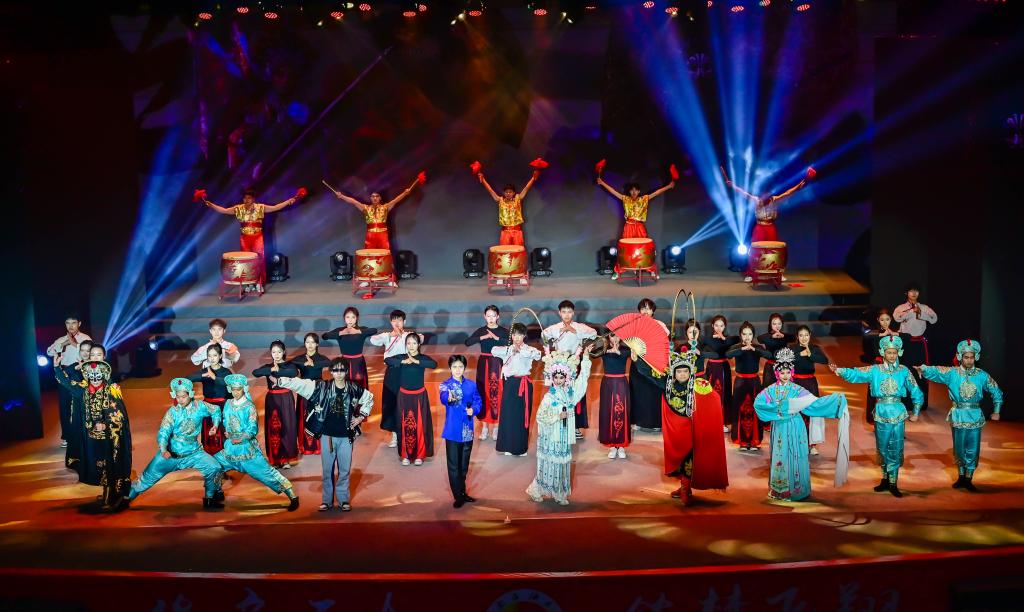 水袖起,衣袂瀲滟,如驚鴻展翅高飛。歌舞《一曲東方》將現代流行音樂和傳統戲曲相結合,悠揚的樂曲與演員的唱腔相得益彰,把現場氣氛推向了新的高潮。表演的同學以其獨特的唱腔、精湛的表演技巧和豐富的舞臺表現力,讓現場觀眾在川劇的藝術魅力中得到情感的共鳴和心靈的滋養,展現了校區學子學習傳承中華優秀傳統文化的成效與風采。