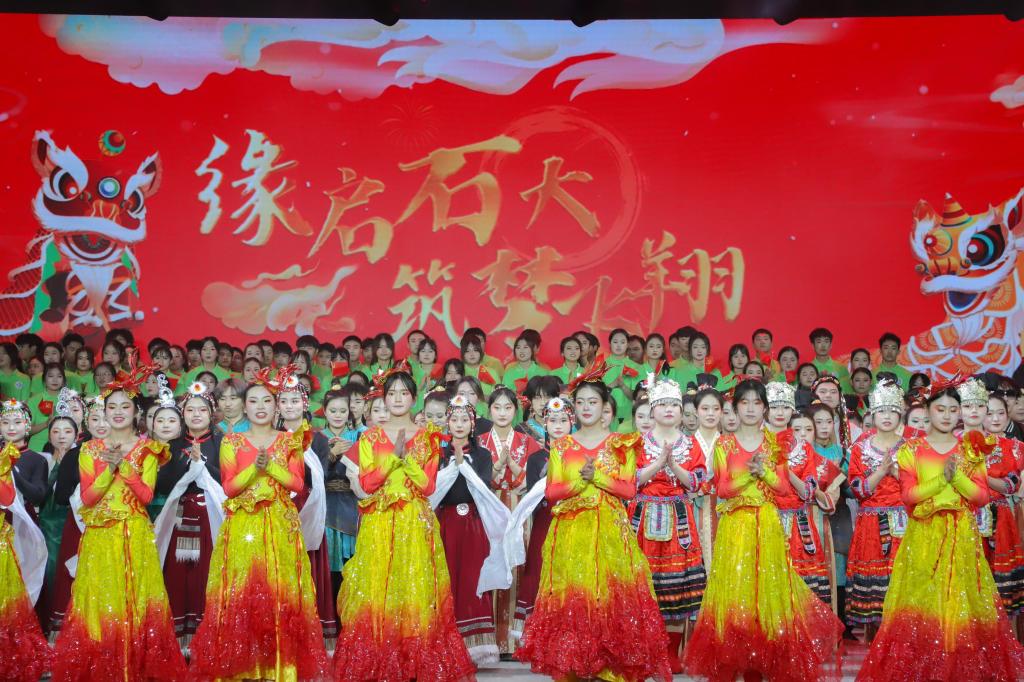 晚會以“緣啟石大,筑夢飛翔”為主題,分為“多彩校園”“魅力中華”“盛世歡歌”三個篇章,用歌曲、朗誦、相聲、舞蹈、雜技等多種表演形式講述了南充校區建設發展的故事,展現了師生積極向上的精神面貌。