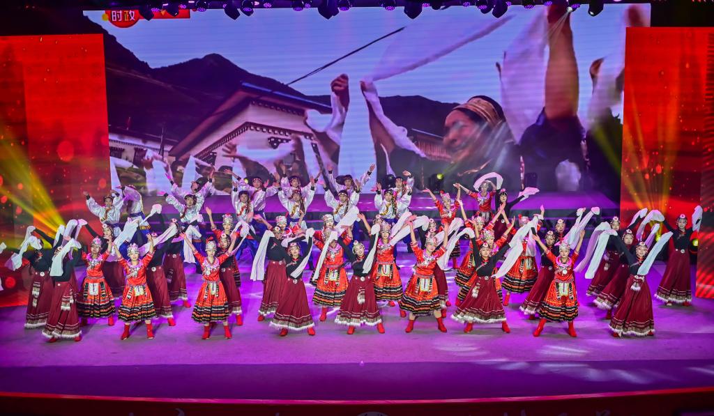 石榴花開相映紅,民族團結一家親。舞蹈《石榴花開》的演員們身著傳統民族服裝歡快起舞,展現了各民族各美其美、美美與共的畫面。歌曲《領航》飽含深情地唱出了黨和人民心連心的時代旋律,抒發了全國各族人民在中國共產黨的帶領下闊步新時代新征程的豪邁之情。