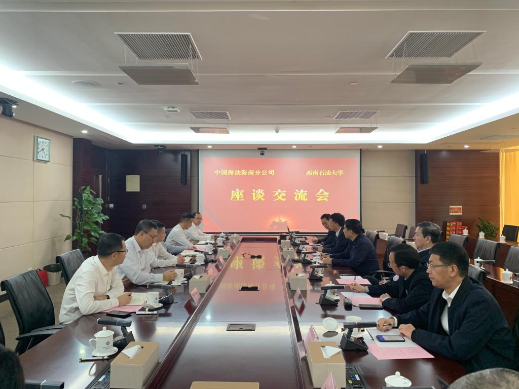 劉小剛對郭建春一行的到來表示熱烈歡迎。他表示,作為西南石油大學校友,為母校所取得的辦學成績感到由衷的驕傲和自豪,感謝學校長期以來對公司發展給予的鼎力支持。希望雙方心懷能源報國的使命感責任感,不斷發揮各自優勢,強化在科研攻關、人才培養等方面的交流合作,積極助力我國海洋油氣勘探開發行業高質量發展,為我國端穩能源飯碗作出應有貢獻。