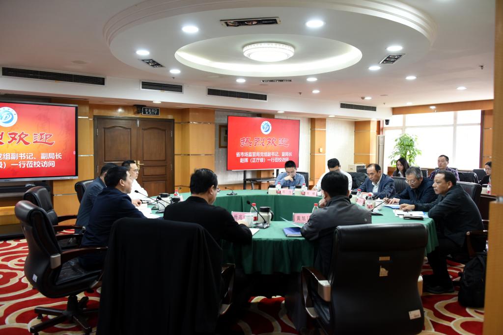 3月22日,省市場監管局黨組副書記、副局長(正廳級)趙輝帶隊來校訪問,指導我校存量專利盤活工作。校黨委副書記、校長郭建春接待了趙輝一行,并座談交流。省市場監管局黨組成員、副局長高曉宇出席會議。校黨委常委、副校長祝效華主持會議。
