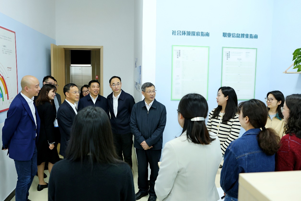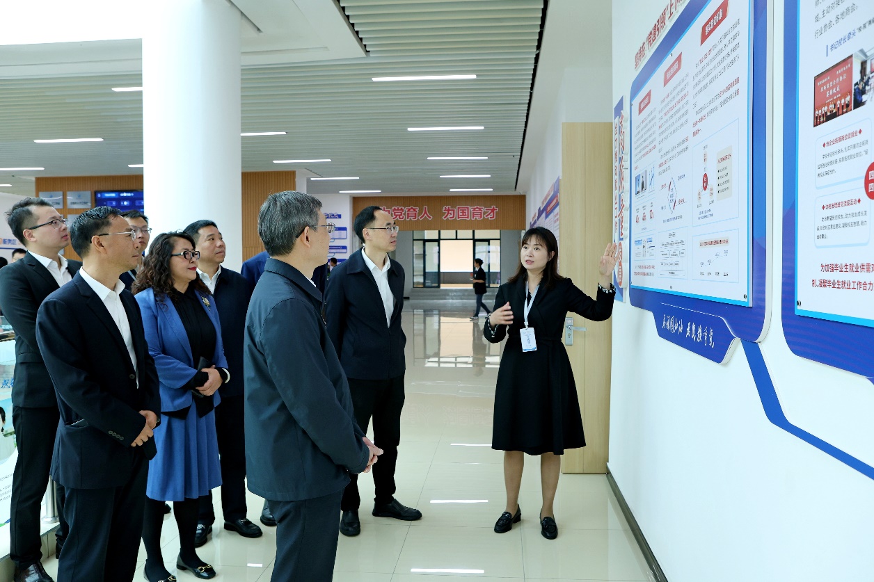 余孝其一行先后實(shí)地走訪了校園招聘大廳、生涯教育名師工作室、就業(yè)育人主題教育基地、大學(xué)生職業(yè)生涯發(fā)展研究實(shí)驗(yàn)室等,聽取了匯報,并與現(xiàn)場人員進(jìn)行了親切交流。
