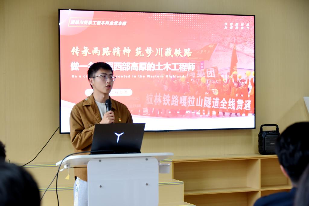 學(xué)習(xí)研討過程中,支部學(xué)生黨員紛紛走上講臺,李思成同學(xué)以三蘇祠為切入點講解了如何弘揚和踐行中華優(yōu)秀傳統(tǒng)文化;劉強(qiáng)同學(xué)分享了立志扎根西部高原投身大國工程的求職故事;王劭陽同學(xué)分享了團(tuán)隊創(chuàng)新農(nóng)用無人機(jī)植保方式服務(wù)鄉(xiāng)村振興的創(chuàng)業(yè)故事;黃冠欽同學(xué)講解了帶領(lǐng)團(tuán)隊在行走中探尋新中國工業(yè)建設(shè)史上100件寶物的實踐故事;張晶、胥歡、岳越三位同學(xué)立足學(xué)校特色,講解了如何認(rèn)識和踐行勞模精神;在分享中,還現(xiàn)場聯(lián)線了優(yōu)秀畢業(yè)生學(xué)長分享了工作感悟……從傳統(tǒng)文化到勞動精神、從求職創(chuàng)業(yè)到社會實踐、從室內(nèi)研討到線上交流,整個活動形式多樣、內(nèi)容豐富、掌聲不斷。