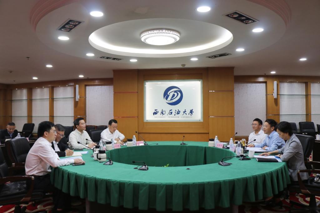 張烈輝對鄧軍一行來校訪問表示歡迎,對學校的辦學特色、大學精神、人才培養以及科學研究等方面進行了介紹。他表示,學校辦學特色鮮明,鑄就了從“為石油而生,為石油而息”再到“為祖國加油,為民族爭氣”的西南石大精神,在長期的辦學實踐中,始終堅持服務國家能源戰略和地方經濟社會發展,學校各項工作取得長足進步。面對高質量發展的時代要求,希望雙方能進一步加深溝通交流,推進雙方在更深層次、更多領域的合作。