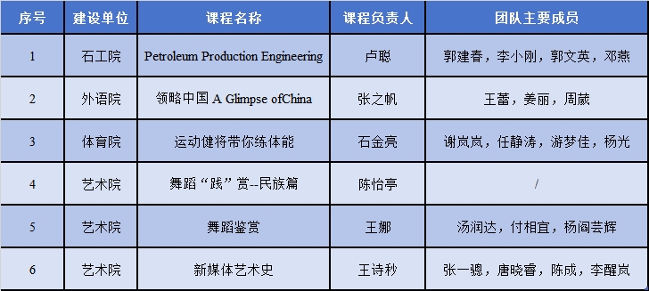 近日,四川省教育廳公布了2023年省級(jí)線(xiàn)上一流本科課程認(rèn)定結(jié)果,我校6門(mén)課程獲得認(rèn)定。此次全省共有220門(mén)課程獲得認(rèn)定。