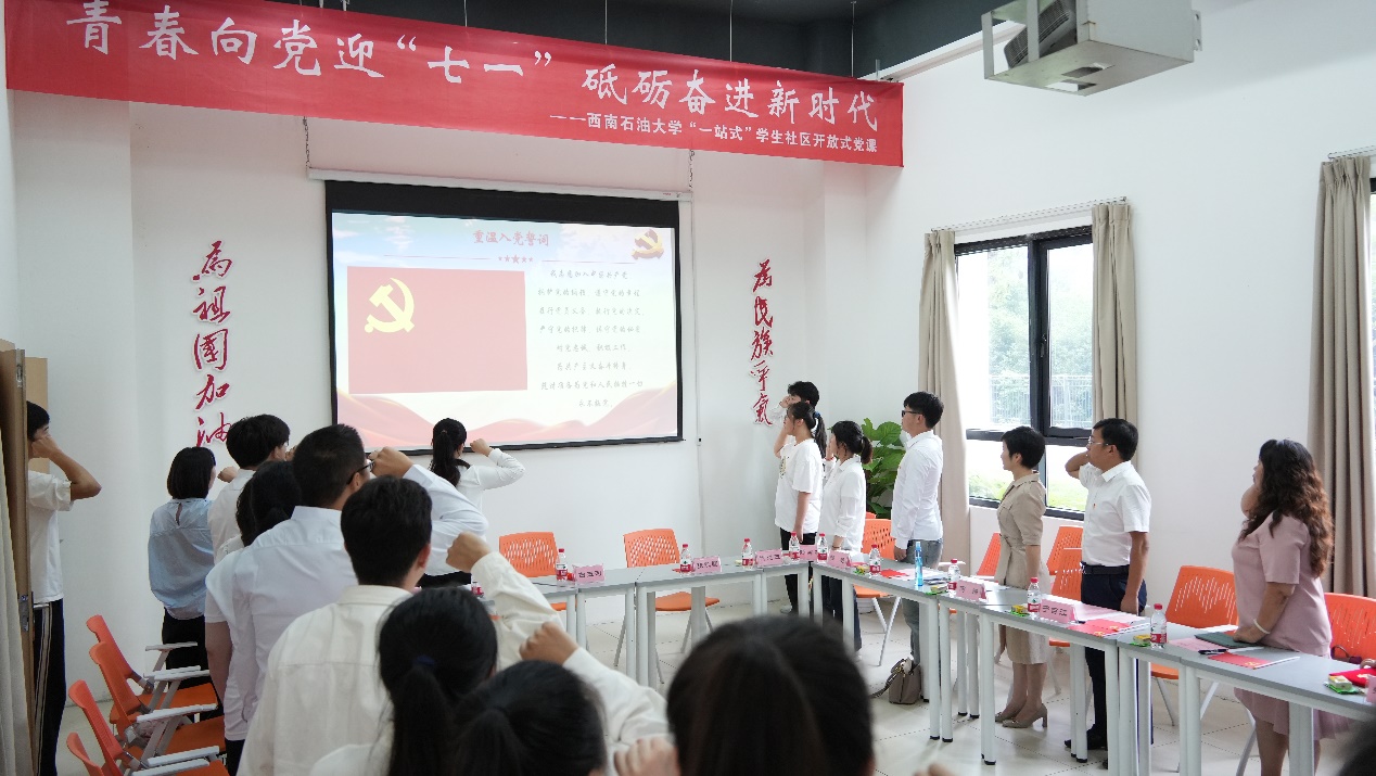 6月28日下午,一堂以“青春向黨迎‘七一’砥礪奮進新時代”為主題的開放式黨課在學校“一站式”學生社區修齊居多功能活動室生動開講。這堂黨課走進學生生活圈,用貼心話講清大道理,為現場師生烹飪了一頓“黨味”濃、“鮮味”足的“精神大餐”。