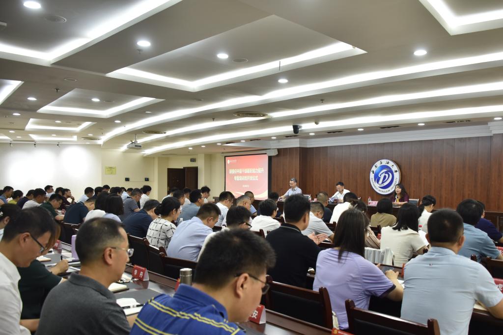 7月8日,學(xué)校新提任中層干部履職能力提升專題培訓(xùn)班正式開班,校黨委書記張烈輝出席開班式并致辭,黨委副書記、工會主席衡彤出席開班式,開班式由黨委常委、組織部部長易聯(lián)樹主持。