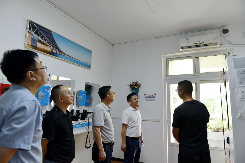 檢查組一行先后對學生食堂、警務服務中心、學生公寓、國重室等重點部位進行安全檢查,對各點位用電安全規范、危化品儲存使用、設施故障問題整改、假期維修改造、校園警務服務情況進行現場查看,并與相關單位負責人進行溝通,提出整改意見和工作要求,確保安全風險隱患得到及時有效化解。