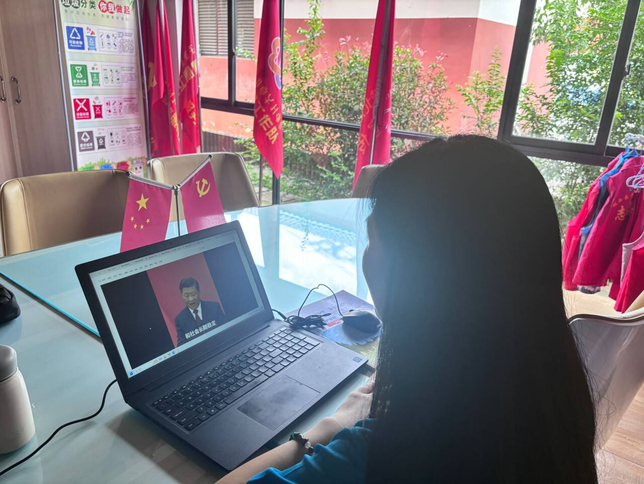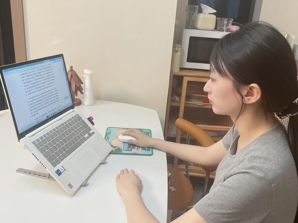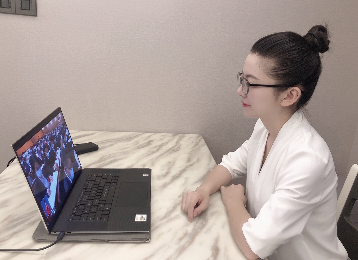 法學(xué)院學(xué)生黨員趙熙睿在實(shí)習(xí)單位現(xiàn)場收看全會