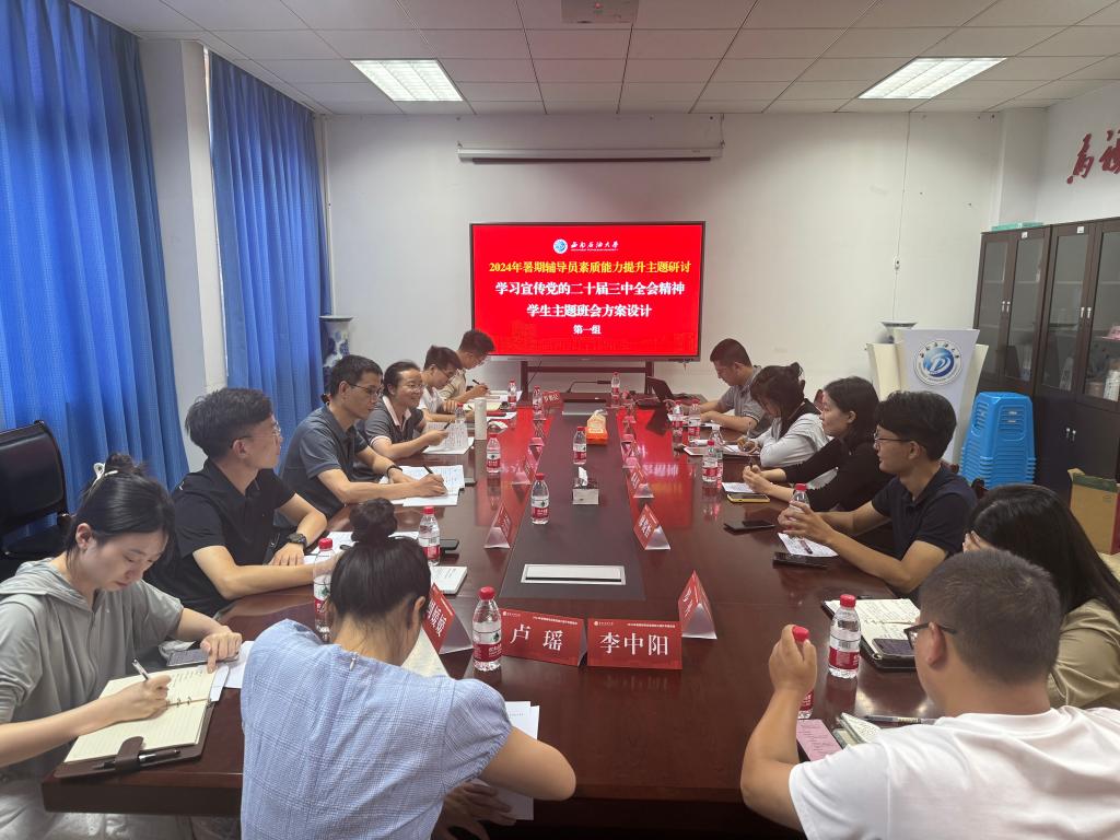 除了專題集中學習外,本次培訓還充分利用課前和晚上等時間,設計了分組研討、經驗微分享、現場教學、結業考試、匯報答辯等環節。全體參訓輔導員分為3組,在6位分組導師的指導下,圍繞“學習宣傳黨的二十屆三中全會精神學生主題班會方案設計”“輔導員抓學風建設、升學深造應開展哪些工作”“輔導員如何做好學生安全穩定與突發事件應對”“輔導員如何開展好學生愛國主義教育”“輔導員如何做好學生安全、依法、文明上網、用網教育”“輔導員個人職業發展的思考與行動”六個專題開展了深入討論。