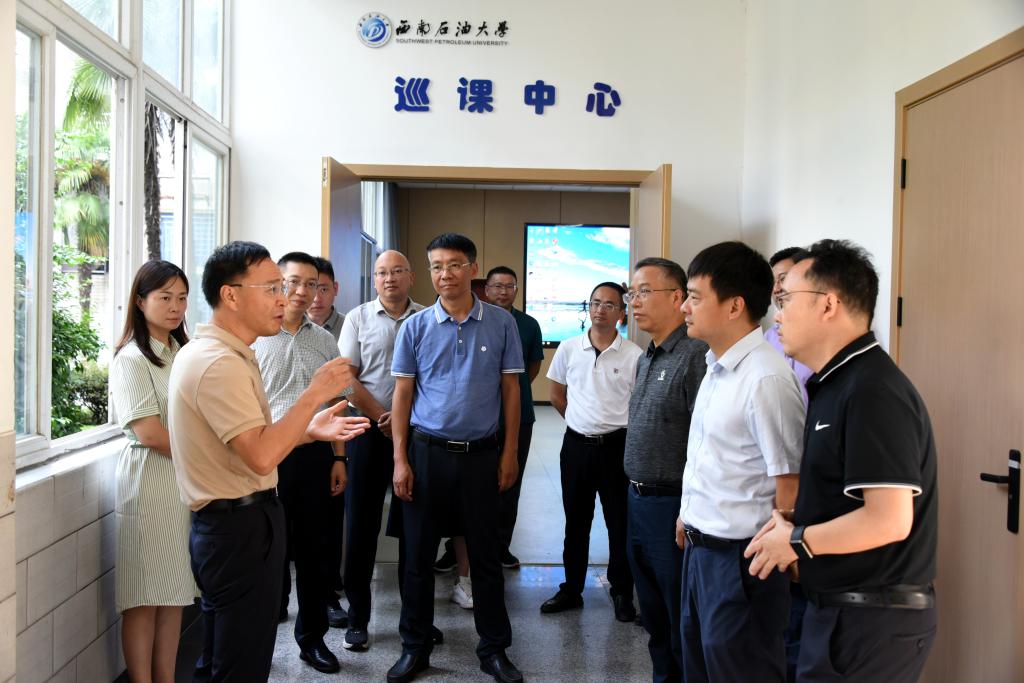 黨委副書記、校長郭建春與周瑩帶隊前往5、6、7棟學生宿舍,博學樓智慧教室檢查學生學習情況和教師線上教學情況,并到網信中心檢查校園內網絡運行情況。