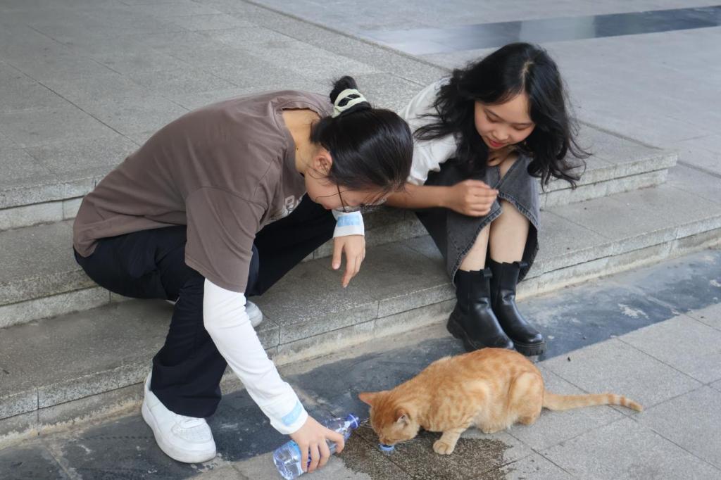 2023級俄語專業的陳慧馨很喜歡小動物,開學第一天下課后,陳慧馨就迫不及待地去看望自己的老朋友“大橘”。“石大的環境很好,有很多可愛的小動物!”
