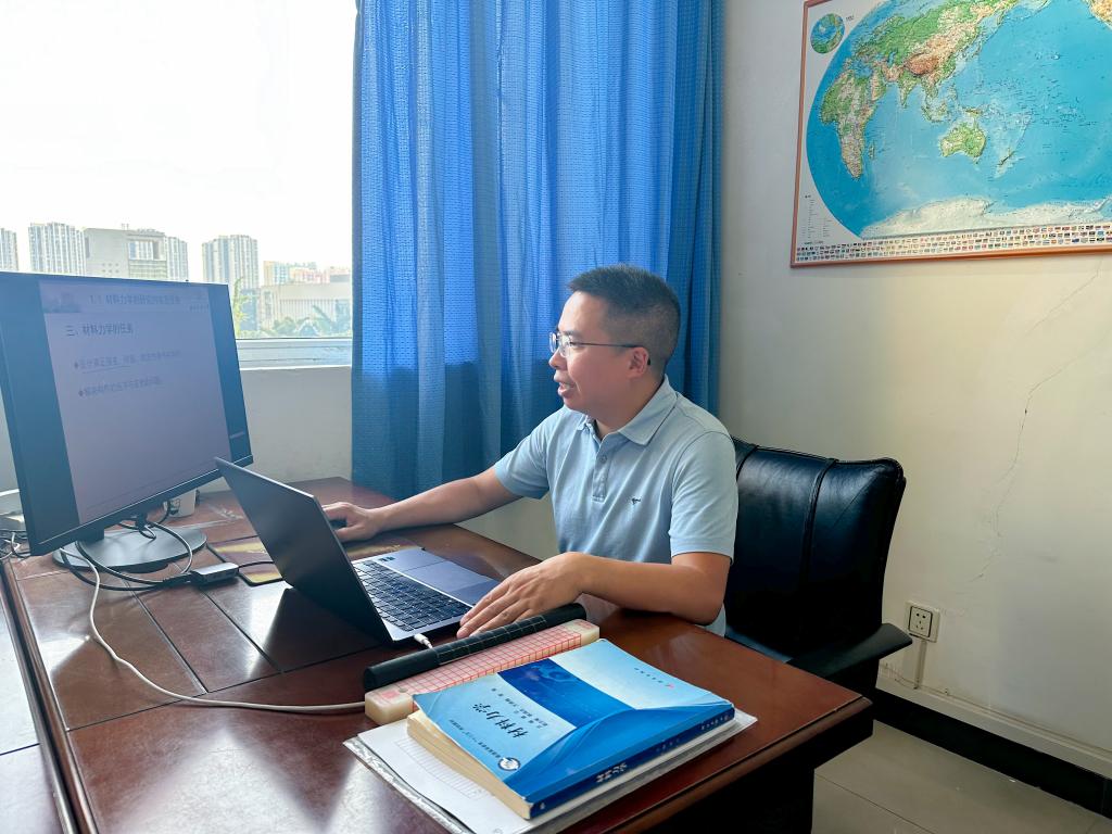 課前半小時,《材料力學》授課老師甯尤軍坐在辦公室電腦面前,提前進入昨天建好的“云課堂”。甯尤軍老師說到:“最近高溫天氣,學校讓我們暫時線上上課,我又當起了課堂‘主播’。”