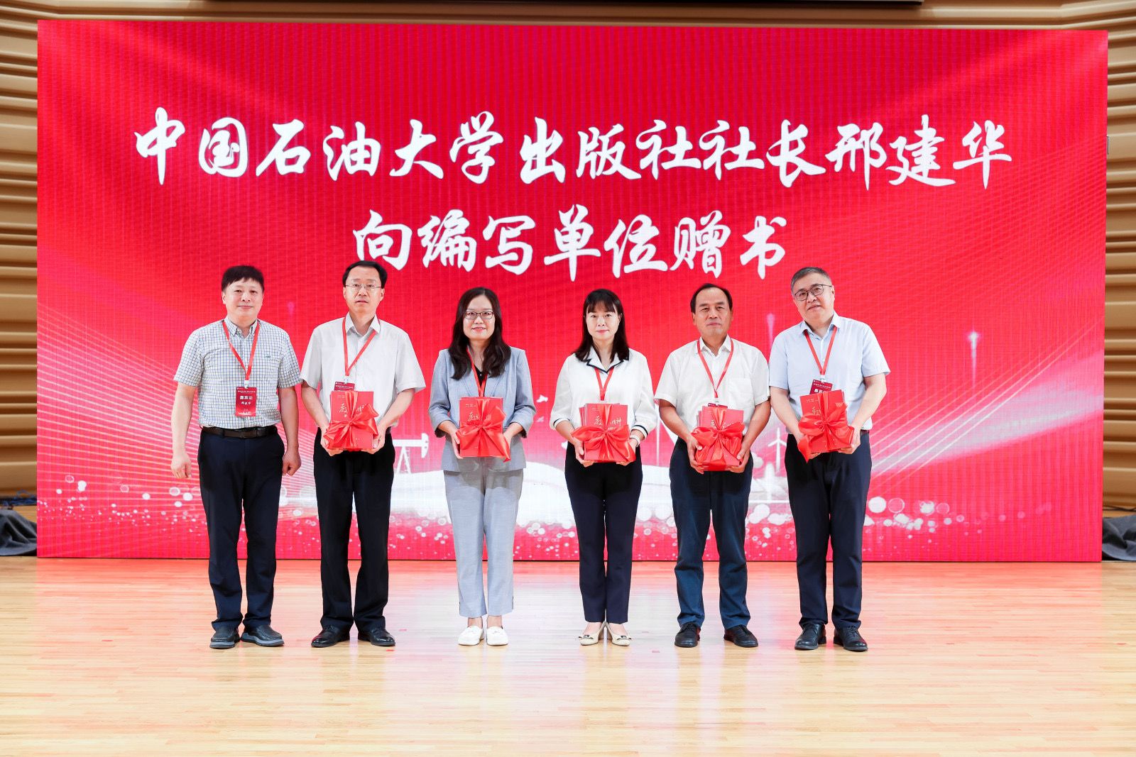 中國科學院院士、中國石油大學(北京)地球科學學院教授王鐵冠,叢書總主編、中國石油大學(華東)校務委員會副主任劉華東,中國石油大學(華東)黨委副書記馬國順,中國石油大學(北京)黨委副書記文永紅,東北石油大學副校長李偉,西安石油大學黨委副書記程永清,西南石油大學黨委常委、黨委宣傳部部長張敏,遼寧石油化工大學黨委宣傳部副部長黃璜共同為《教育家精神與石油報國》叢書揭幕。