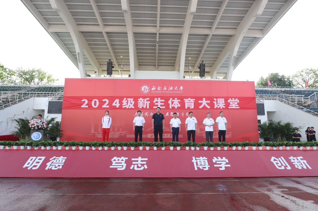 9月11日,西南石油大學2024級新生體育大課堂在一期田徑場舉行,中國女子曲棍球隊主力門將、巴黎奧運會女子曲棍球銀牌獲得者葉嬌應邀來校為新生授課。
