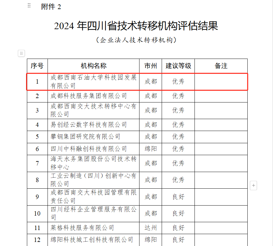 近日,四川省科學技術廳發布了《關于公布2024年四川省技術轉移機構考核評估結果的通知》,我校國家大學科技園考核評估結果為“優秀”。