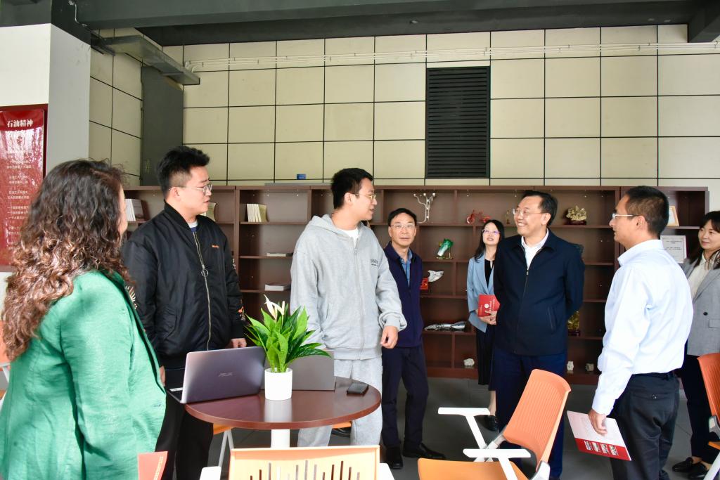 張瀾濤在我校黨委書記張烈輝,校黨委副書記、工會主席衡彤的陪同下參觀了《教育家精神與石油報國》叢書展覽、三期修齊居和新材院,調(diào)研指導(dǎo)學(xué)生一站式社區(qū)和校園文化“一院一品”建設(shè)情況。