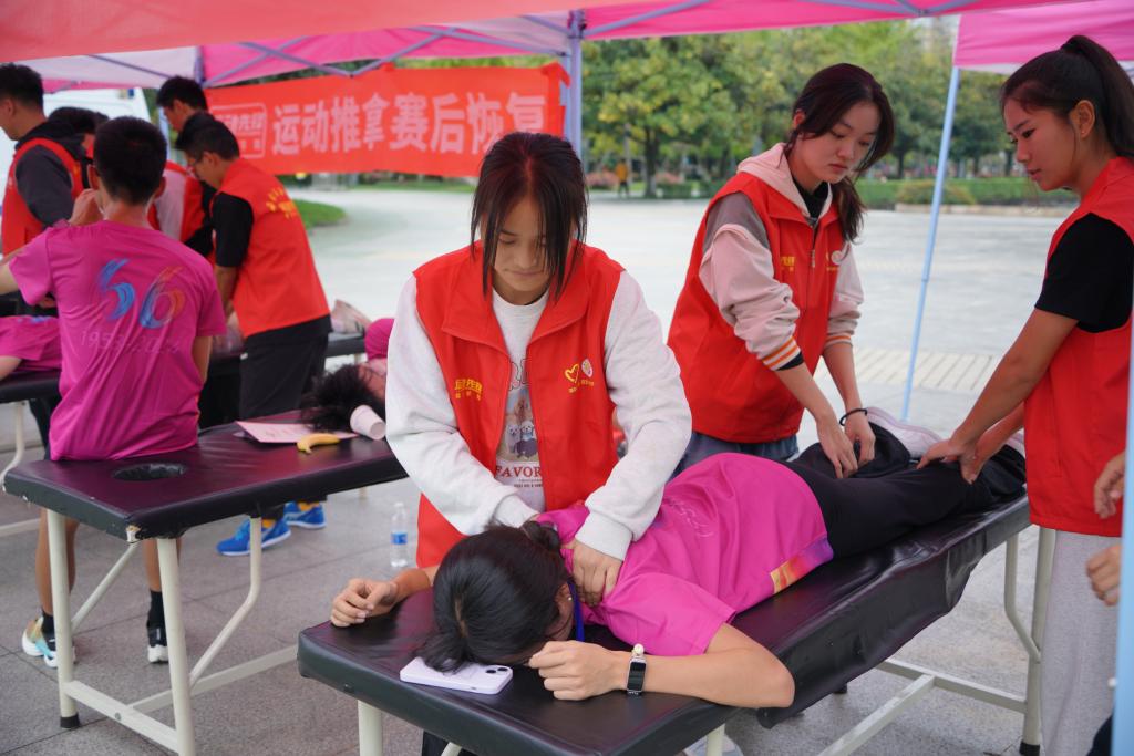 “跑完6.6公里就可以發(fā)朋友圈了!”“每一步都是堅持,每一刻都是榮耀!”比賽沿途懸掛了各式各樣的橫幅,寫滿了激情與趣味兼具的口號,為整個比賽營造了濃厚的氛圍。沿途設置多個物資補給站,志愿者們熱情地為參賽者提供能量飲料、水果等補給品,確保每位選手以最飽滿的狀態(tài)前進。比賽還為參賽者準備了暖心且全方位的后勤保障服務。賽道旁,攝影、醫(yī)療、安保等賽事服務齊全,力求使每一位參賽者體會到體育運動鍛煉體格、振奮精神的魅力。