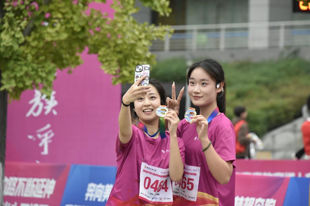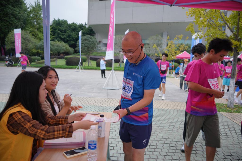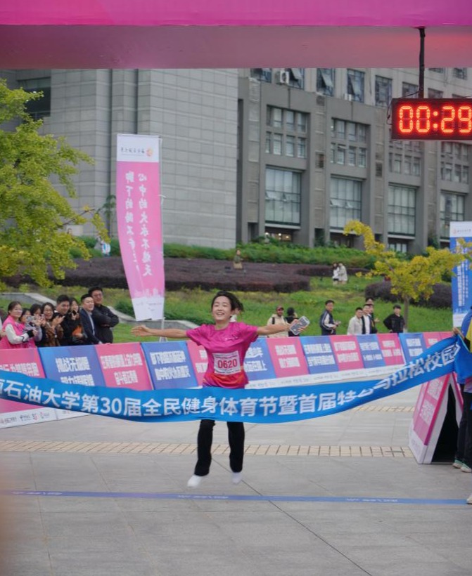 2023級石油工程專業(yè)張涵宇為了突破自己,堅持跑完了全程,跑到終點時已氣喘吁吁。站在終點,他笑著與記者分享道:“真是一次挑戰(zhàn)自己、超越自我的過程,跑完全程我就是自己的冠軍!”