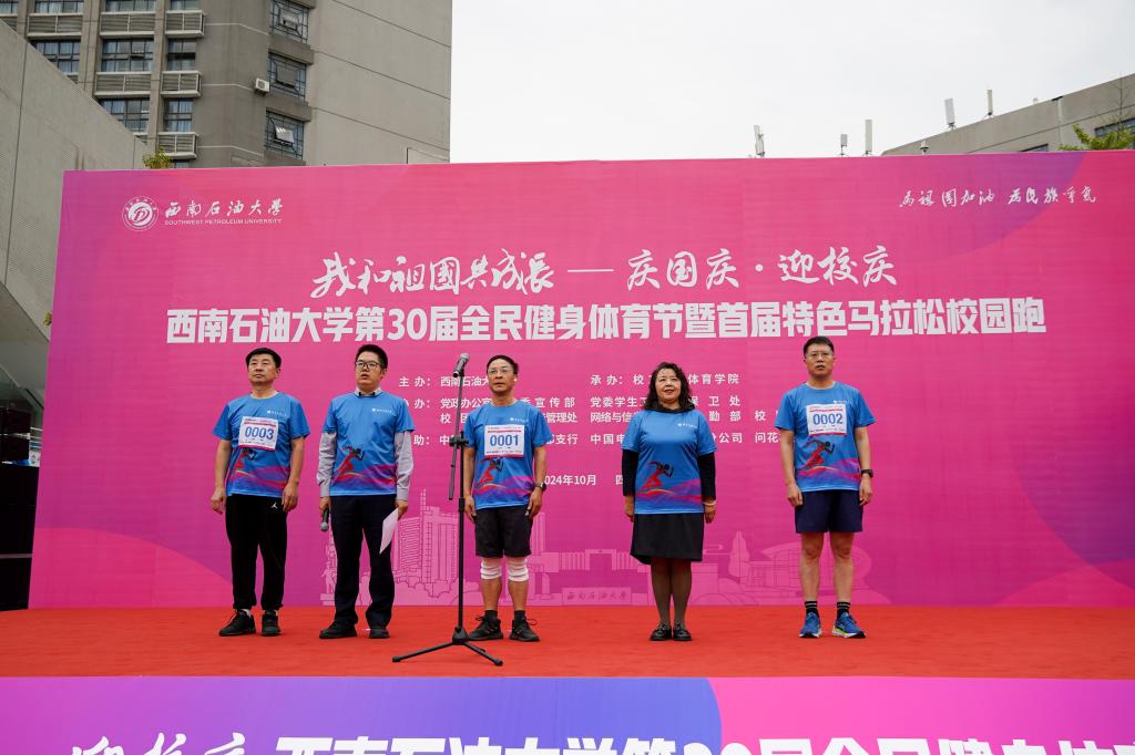 為營造慶祝新中國成立75周年的濃厚氛圍,喜迎學校建校66華誕,我校隆重舉行第三十屆全民健身體育節(jié)開幕式暨首屆特色馬拉松校園跑,近八百名師生在秋風颯爽的石大校園奔跑,用堅持和毅力展現(xiàn)運動風采,用活力與激情點燃整個校園。校黨委書記張烈輝參加比賽并宣布活動開幕,黨委副書記、工會主席衡彤致辭。省紀委監(jiān)委駐校紀檢監(jiān)察組組長、校黨委副書記、紀委書記張明主持活動。黨委常委、副校長李德海,副校長裴向軍參加比賽。