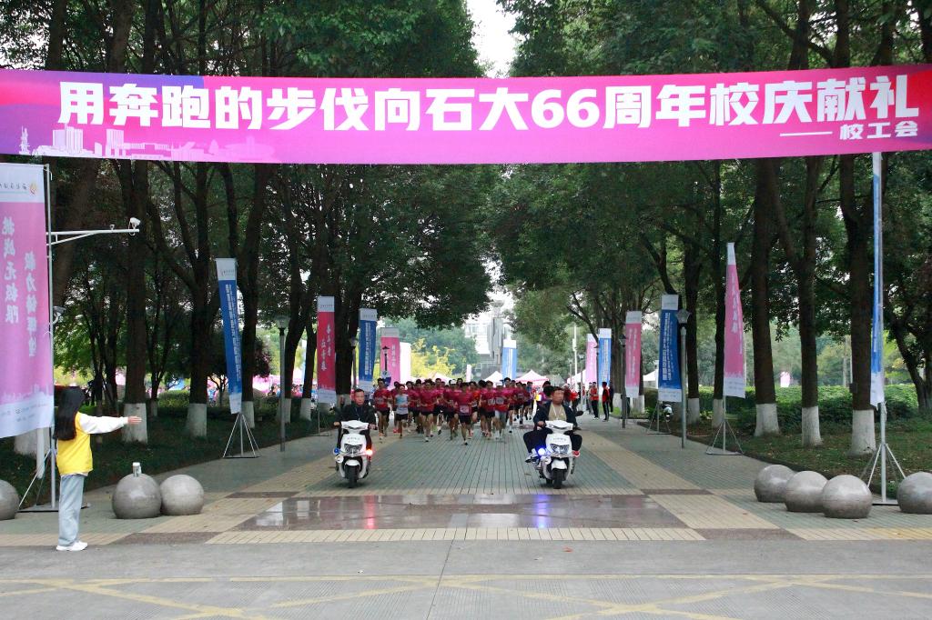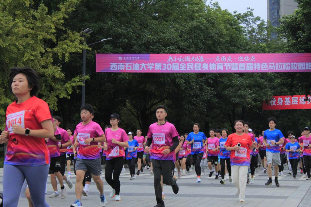 本次活動由西南石油大學主辦,校工會和體育學院承辦,相關單位協(xié)辦。比賽路線全長6.6公里,象征著學校66年的輝煌歷程與深厚底蘊,更是對66載崢嶸歲月的深情回望與崇高致敬。比賽設精英組、校友組、教師組、學生組,起點為圖書館,主要路線為環(huán)校公路,沿途經(jīng)過國重路口、南環(huán)路、博學路、院士林等地點,最后回到圖書館。路線串聯(lián)校園內(nèi)多個重要地標和景點,矗立的科技之光、莊嚴的石油魂等,在此刻都是青春的見證者,奔跑中盡顯石大的體育文化的魅力。