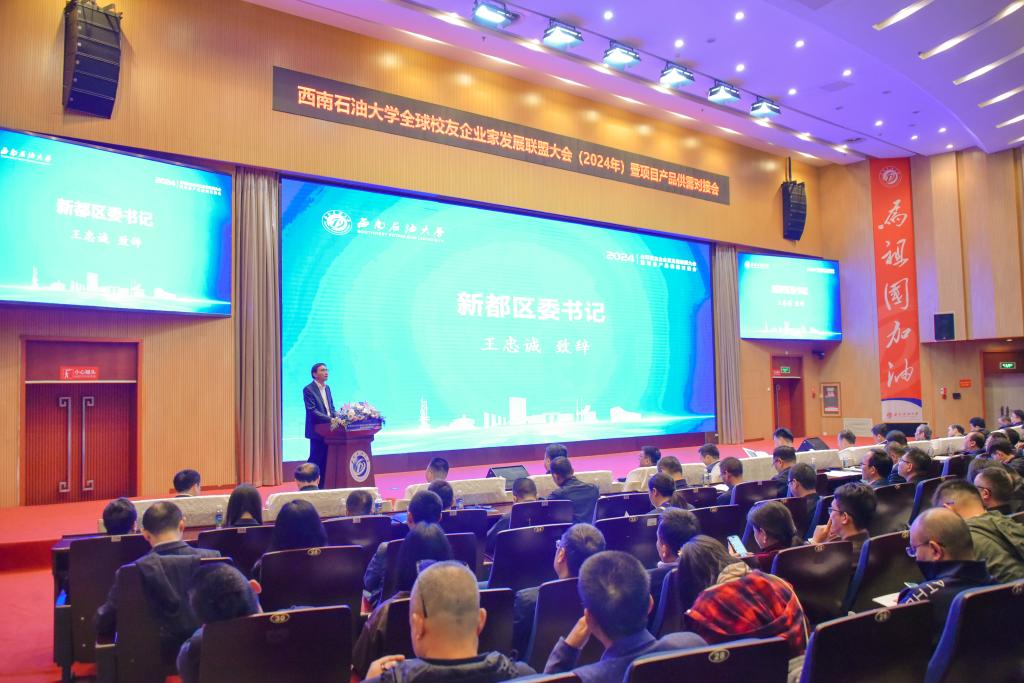 會上,西南油氣田科技信息部副主任鄒小龍,大慶油田科技信息部副主任單高軍,遼河油田科技信息部副主任孫大樹,長慶油田科技發展部副主任方國慶,塔里木油田科技管理部副主任徐彥龍,新都區人民政府副區長、新都高新區黨工委書記賀凱豐,學校黨委常委、副校長祝效華分別圍繞各自單位發展規劃、科研攻關、產業環境、科技成果作匯報。南充市臨江新區、克拉瑪依校友工作聯絡站、中國石油昆侖資本有限公司以及二十余家企業進行了推介和項目發布。