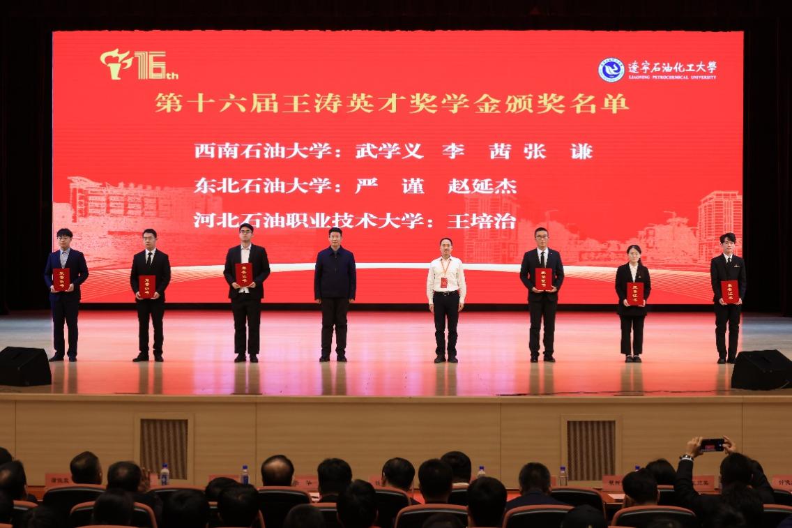 11月17日,第十六屆王濤英才獎學(xué)金頒獎典禮在遼寧石油化工大學(xué)舉行,校黨委副書記、校工會主席衡彤及我校三名獲獎學(xué)生出席。