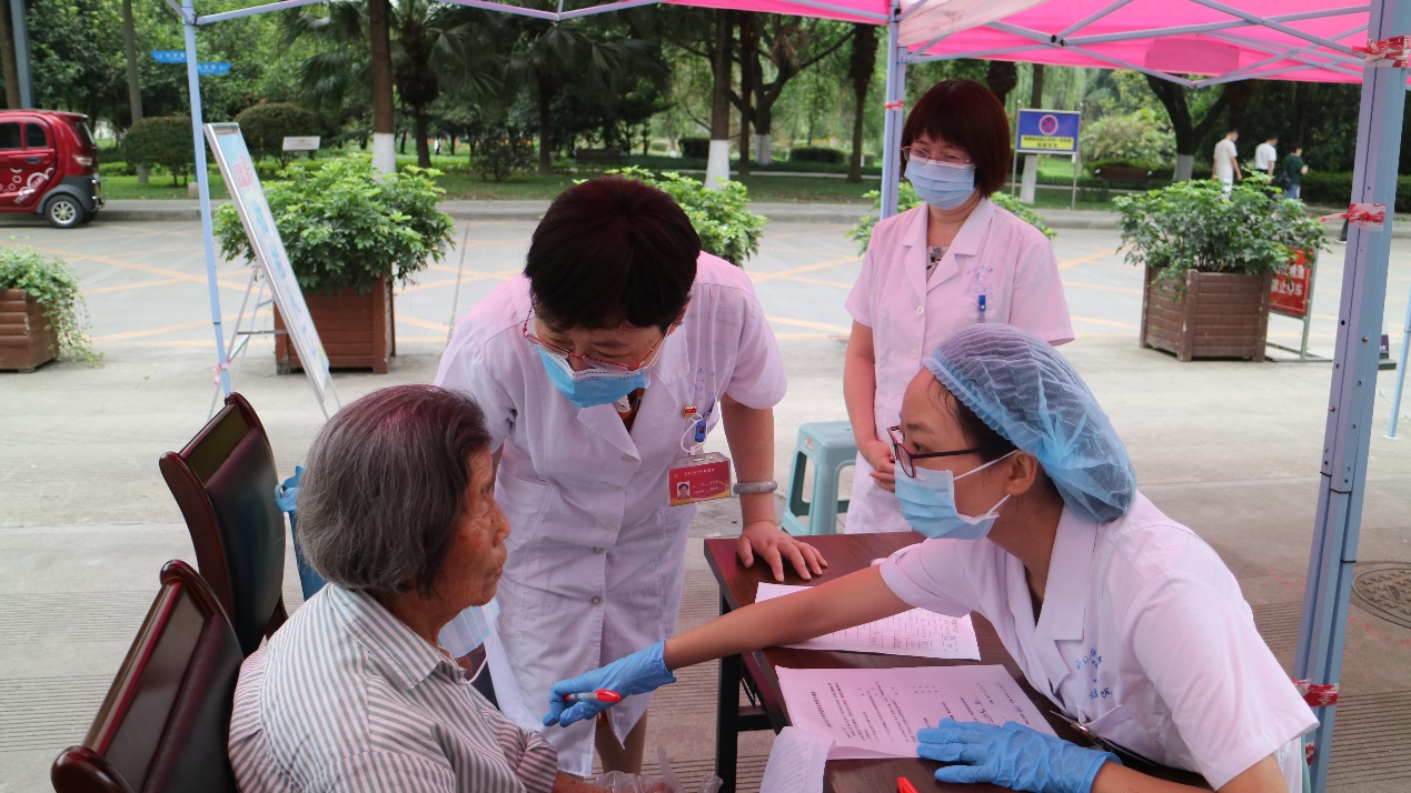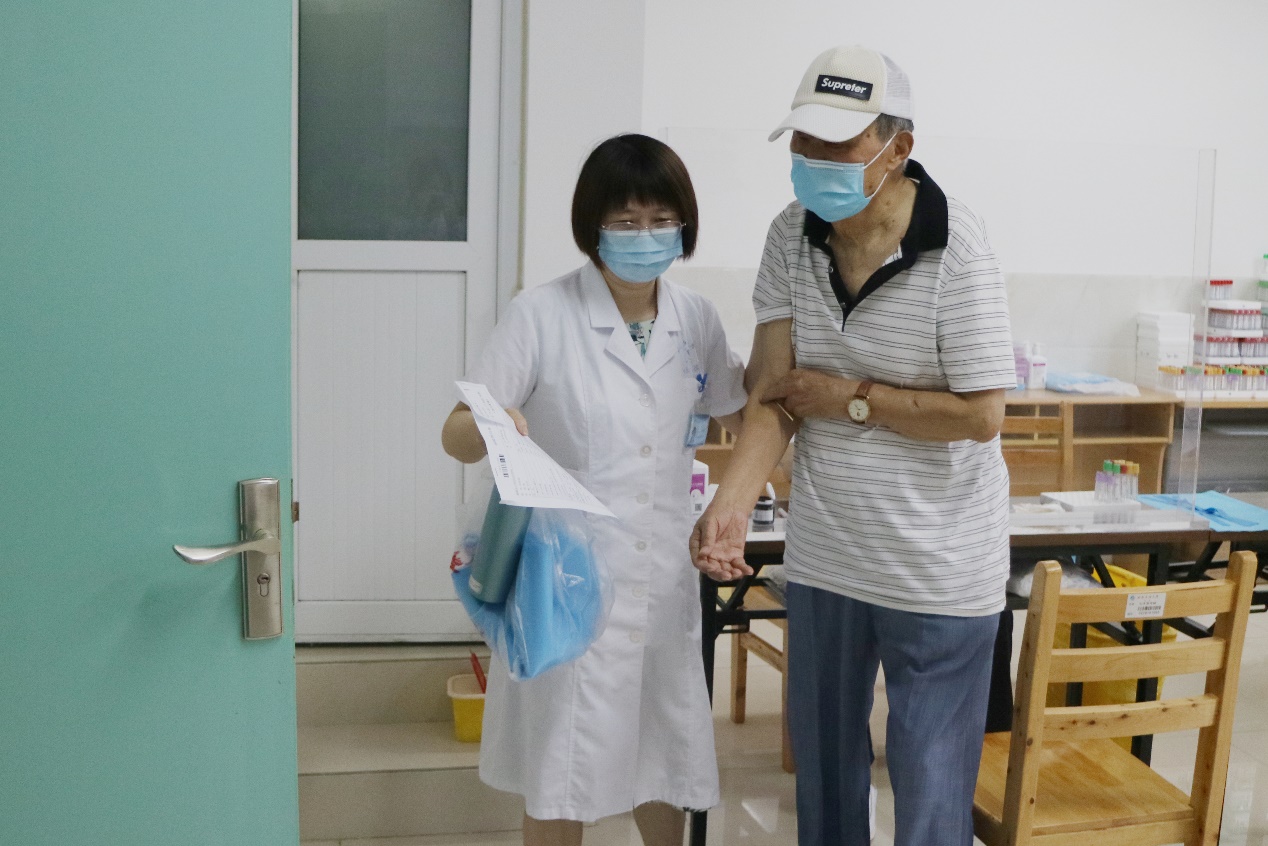 醫(yī)護人員陪同離退休干部抽血