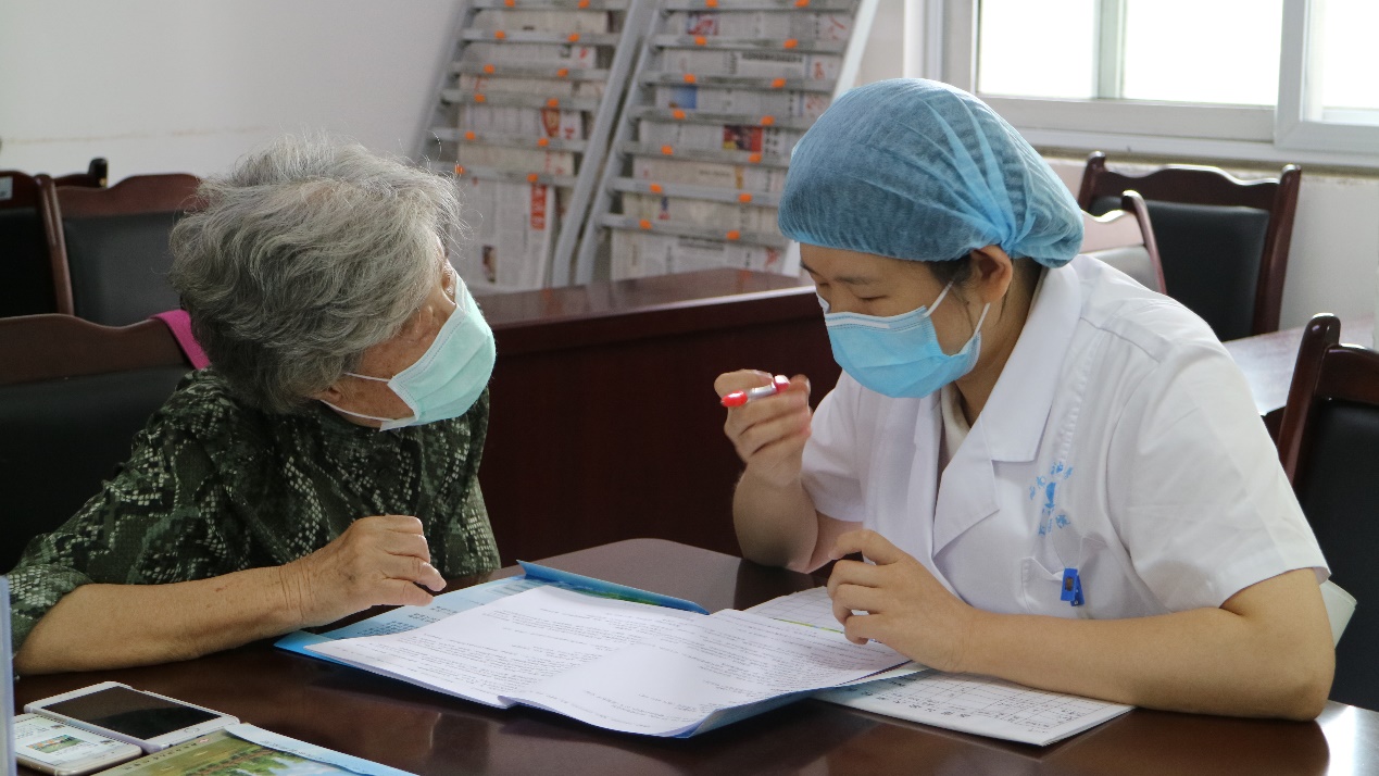 醫(yī)護人員主動詢問老人健康問題