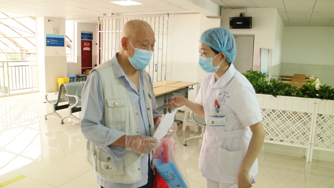 醫(yī)護人員主動解答老人問題