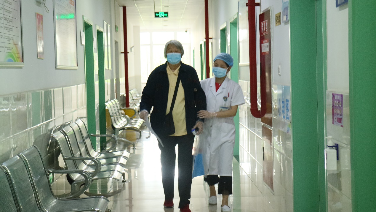 醫(yī)護人員攙扶離退休干部體檢