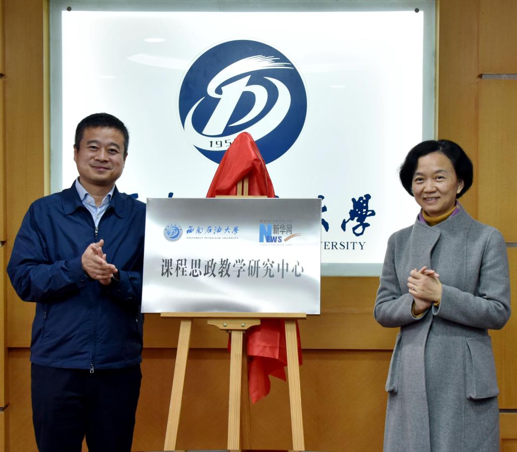 簽約儀式上,教務處處長黃健全與新華網教育事業中心運營總監徐晶共同簽署了《西南石油大學與新華網共建課程思政教學研究中心框架合作協議》;劉向君與姚予疆為“西南石油大學-新華網課程思政教學研究中心”揭牌。