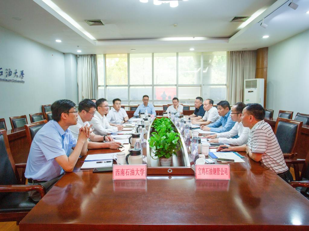 校黨委常委、副校長祝效華對張斌一行來訪表示歡迎,對寶石鋼管一直以來的支持表示衷心感謝。他介紹了學校近年來在人才培養、科學研究方面的成績和進展,以及研究特殊管螺紋對更好服務石油化工及新能源行業、提高管業競爭力的必要性。他希望國研中心能夠搭建高水平科研平臺,匯聚雙方在技術開發、人才培養等方面的優勢資源。