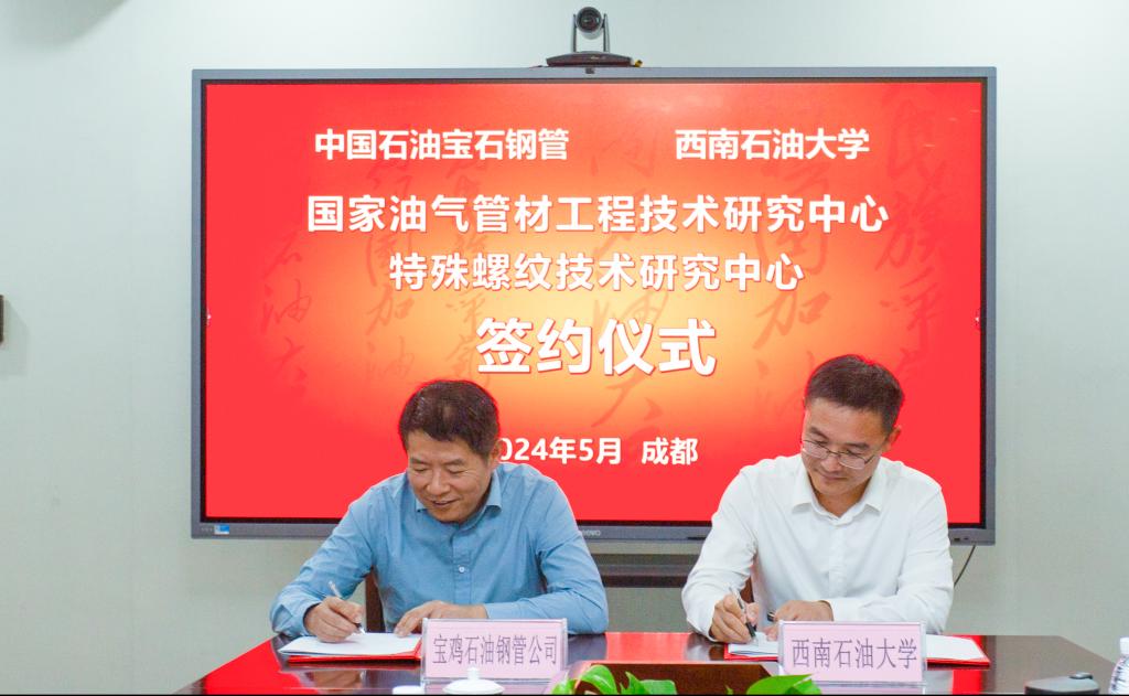 中油國家石油天然氣管材工程技術中心、寶石鋼管資陽鋼管有限公司、寶石鋼管亞洲鋼管有限公司,我校科研院、機電院相關負責人參加了簽約儀式。
