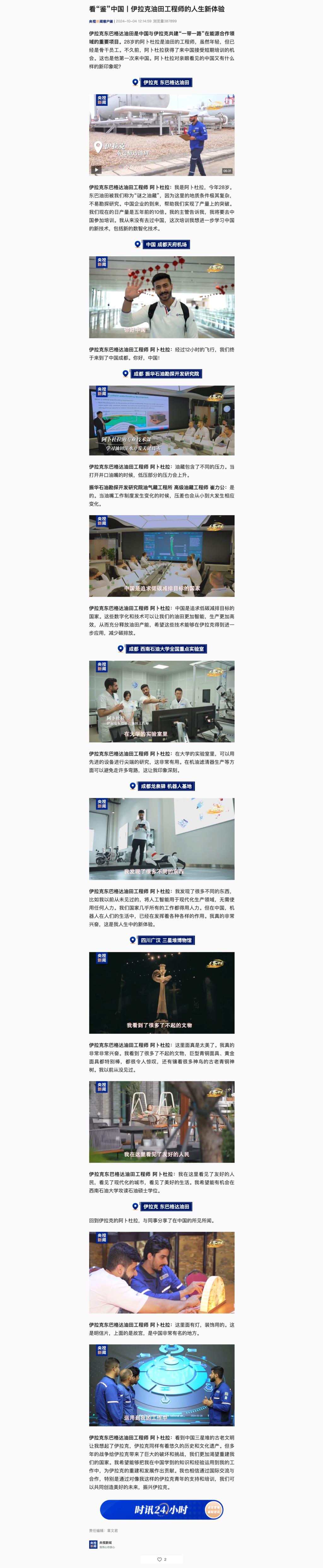 伊拉克東巴格達油田工程師 阿卜杜拉:我是阿卜杜拉,今年28歲。東巴油田被我們稱為“謎之油藏”,因為這里的地質條件極其復雜,不易勘探研究。中國企業的到來,幫助我們實現了產量上的突破。我們現在的日產量是五年前的10倍。我的主管告訴我,我將要去中國參加培訓。我從來沒有去過中國,這次培訓我想進一步學習中國的新技術,包括新的數智化技術。