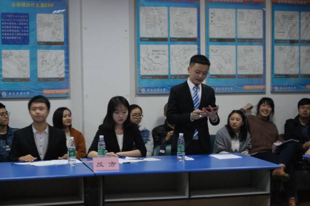 比賽中,我院代表隊(duì)和土木與建筑工程學(xué)院代表隊(duì)圍繞“五丈灌韭與五斗折腰哪個(gè)更可悲”這一辯題展開(kāi)了緊張激烈的辯論。經(jīng)過(guò)開(kāi)篇立論、攻辯、自由辯論、總結(jié)陳詞等四個(gè)環(huán)節(jié),最終,我院代表隊(duì)獲勝。