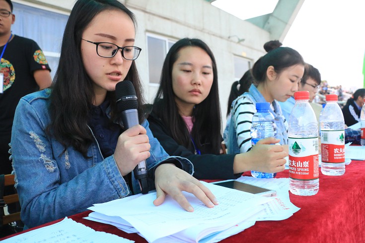 校運會兩天的天氣時而陰雨連綿、時而烈日當空照。在兩天的時間里,他們一刻都未歇息,超越自我,不停的在工作、廣播。廣播和批閱,辛苦又勞累,但他們卻絲毫沒有抱怨,而是每一天都用心的去廣播每一篇加油稿。賽后記者采訪了段正霞,問道:“廣播久了會不會覺得疲憊厭倦?”她笑了笑說:“累是一定的,但是心情卻是開心激動的,每當讀到藝術學院的投稿時,就格外激動,不能在賽場上爭光,就在這里為學院健兒們加油吧。”