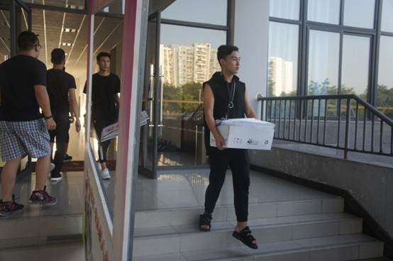 我院工作人員早上7點(diǎn)30在藝術(shù)大樓102開始了迎新前的準(zhǔn)備工作,藝術(shù)學(xué)大樓102是迎新物資堆放的地方,工作人員需要用三輪車把物資拉到博學(xué)廣場,女生負(fù)責(zé)搬出物資,男生負(fù)責(zé)托運(yùn)至博學(xué)廣場。工作人員配合默契,不一會兒物資就搬運(yùn)完畢。