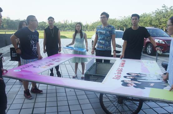 記者隨著工作人員來到博學(xué)廣場,藝術(shù)學(xué)院的迎新攤位已經(jīng)準(zhǔn)備完畢,工作人員也已就位,記者發(fā)現(xiàn)攤位旁搭建了一個小舞臺,據(jù)現(xiàn)場工作人員介紹,這個舞臺是新生才藝展示平臺,而且參加才藝展示的新生還能得到學(xué)院精心準(zhǔn)備的禮物。此次的迎新還有一個特殊方式,那就是直播迎新,線上與線下同步迎新,到不了現(xiàn)場沒關(guān)系,同學(xué)們也可以拿著手機(jī)觀看直播,表達(dá)對學(xué)弟學(xué)妹的祝愿和祝福。