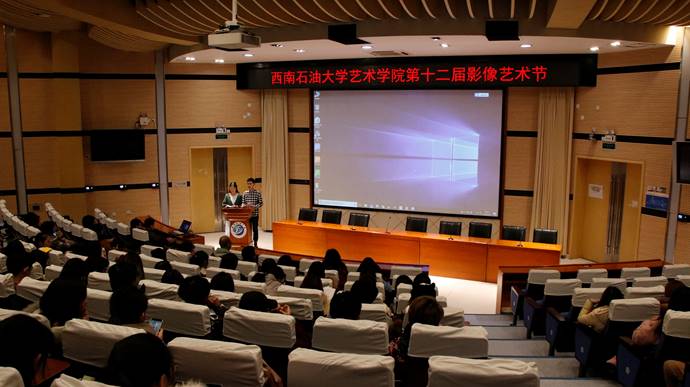 2018年1月4日晚,西南石油大學藝術學院第十二屆影像藝術節在思學樓A114成功舉辦。藝術學院黨總支書記殷沖,黨總支副書記何姍,藝術學院院長焦道利,輔導員竇雪鋒、孫曉光老師,編導專業、表演專業、播音與主持專業教研室老師蒞臨現場觀看影片。
