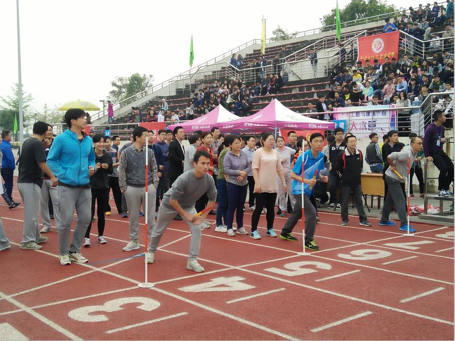 本次運動會藝術學院教職工主要參加教職工50米迎面接力、女子100米決賽、男子100米決賽、4X100米接力決賽等比賽項目。在此起彼伏的加油吶喊聲中,藝術學院每一位教職工老師的眉眼中流露出的都是專注和認真。他們以極大的熱情投入到激烈的比賽當中,你追我趕,奮勇前進。在50接力中大家都使出了渾身解數,加快速度完成比賽項目。平日里少有集體合作表演的他們,今天在藝術學院助威團的陣陣掌聲中完成了一場精彩的表演。