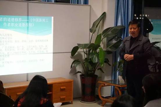 會議上,李民老師用幽默風趣的方式就如何進行新聞采訪與寫作為同學們做出了指導。大家在輕松愉快的氛圍中懂得了如何做好通訊工作和群眾工作。李民老師強調,構成新聞的要素必須準確無誤,引用的資料也必須做到準確無誤,保持新聞的真實性、時效性是重中之重。新聞中涉及的思想認識和相關人物心理活動必須是當事人所述,具有真實性。