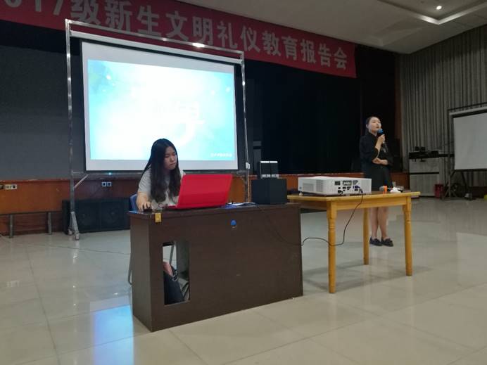 藝術學院第八屆學生會主席團成員申靜怡介紹了學生會的功能與定位,她向新生們簡要的介紹了學生會的職能及日常工作,希望更多的同學可以對學生工作滿懷熱情并為學生會貢獻一份力量,并從中得到鍛煉和成長。
