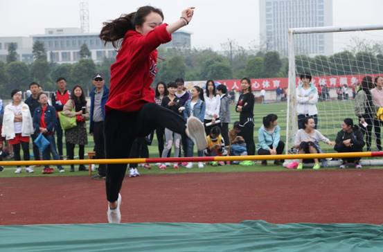 上午8點40分,來自我校各院系的35名同學聚集在一期體育場參加女子跳高比賽,藝術學院2016級表演專業李婷同學參與比賽。