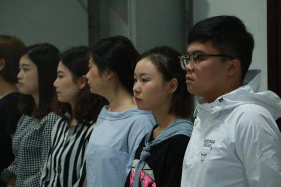 本次晨練主要圍繞“口部操”進行展開,即饒舌,彈舌,共鳴音等基本功。15級播音專業同學圍繞藝術樓大廳整齊地排列著,即使沒有吃早飯,但依舊懷著飽滿的熱情和昂揚的激情用高調嗓音來喚醒自己。“啊啊啊啊啊……”用字正腔圓,雄渾而有力來形容他們的發音絲毫不為過。響亮的晨練聲開啟了一天的專業課程,也吹響了本學期不斷進步的號角,無疑展示出藝術學院學子們蓬勃的朝氣與活力。