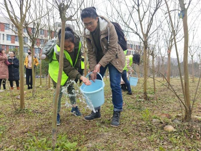大家對此次活動也是充滿了相當大的熱情,在與樹苗澆水扶正的同時,大家有說有笑、勤勤懇懇,在這清風的吹拂下,一下子把大家帶入了另一個世界。不論是小草還是小樹,都如同人一樣,它們也應同我們一樣生存于這樣的一個美好世界。此次活動不僅體現了大家對萬物平等的平等的關愛、呵護之心,也讓我們懂得人什么叫做大愛與小愛。與萬物同生、與自然和諧相處,我們才會得到應有盡有的幸福,就如春夏之時,樹木用它寬大的葉子為我們遮蔽烈日,秋冬之時,它用它瘦弱骨干的身軀引領冬日照耀我們。今天,我們用實際、豐富的行動,成功收獲了冬日的第一份喜悅。