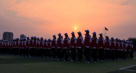 在夕陽的余暉中,我們看到的是教官嚴格訓練的場面,是藝術學院新生剛毅充滿活力的臉龐,同時也感受到了輔導員老師們對新生的期望與關心。讓我們共祝2016級藝術學院新生能在軍訓中磨練、成長,希望他們能在閱兵式中取得好成績,也祝他們的大學生活從軍訓開始一路高歌。